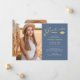 Diese doppelseitige 2-Foto-stilvolle Abschluss-Ankündigung oder Dankeschön-Karte, verfügt über modernen Text verschmolzen mit eleganten Kalligraphie-Skript in goldfarben und weiß auf staubblau. Fotos sind vorne und hinten, ideal für das Framing. Der Hintergrund kann einfach an eine Farbe Ihrer Wahl angepasst werden. Um mehr zu sehen, besuchen Sie meinen Shop hier unter "www.Zazzle.com/LakeViewCardCo". Danke