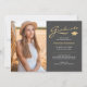 Diese doppelseitige 2-Foto-stilvolle Abschluss-Ankündigung oder Dankeschön-Karte, verfügt über modernen Text verschmolzen mit eleganten Kalligraphie-Skript in goldfarben und weiß auf grau. Fotos sind vorne und hinten, ideal für das Framing. Der Hintergrund kann einfach an eine Farbe Ihrer Wahl angepasst werden. Um mehr zu sehen, besuchen Sie meinen Shop hier unter "www.Zazzle.com/LakeViewCardCo". Danke