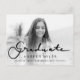 Moderne Abschluss Foto Postkarte mit einem kalligraphischen Graduate-Skript auf einem weißen Farbverlauf Hintergrund, der den Text Pop. Geeignet für die Uni- oder Oberstufe. Kann als Abschluss verwendet werden dank Ihrer Karte oder Party Einladung.