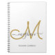 Modernes, trendiges, gürtelweiße und goldenes personalisiertes mit Monogramm Spiralnotebook. Dieses schlichte, elegante Design zeichnet sich durch einen kursiven handgeschriebenen Namen mit grauen Wimpern und ein riesiges handgeschriebenes Monogramm-Skript in Gold auf weißem Hintergrund aus. Dieses hübsche Notizbuch ist ein ideales Geschenk für Geschäftsleute, berufliche, schulische, Geburtstagsparty, Hochzeiten und alle Party und Anlässe für Menschen, die mädchenhafte und moderne Stile mögen. Wenn Sie Hilfe oder Match-Artikel benötigen, kontaktieren Sie bitte den Designer.