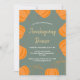 Dieses bezaubernde Erntedank Dinner Einladung zeigt einfache, wasserfarbene orangefarbene Kürbisse vor einem salzgrünen Hintergrund. Verwenden Sie die Entwurfstools, um Text, Schriftart und Farben zu aktualisieren. Auch als digitaler Download verfügbar.