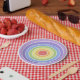Modernes, farbenfrohes Regenbogenfarbenmuster Pappteller