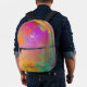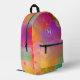 Dieses lustige Rucksack-Design verfügt über einen farbenfrohen Aquarellhintergrund in den Farben Magenta, Orange, Grün und Gelb. Sie können es mit Ihrem eigenen Monogramm auf der Vorderseite anpassen. Es ist ein cool modernes Design für Kinder und sogar Erwachsene!