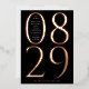 Diese moderne und fett Save the Date Karte zeigt das Datum Ihrer Hochzeit in extra großen Ziffern in realen Rose Gold-Folie Typ auf einem schwarzen Hintergrund. Die Namen des Paares und der Ort der Hochzeit werden innerhalb der Null für Monate von Januar bis September und zum links von der Zahl von Oktober bis Dezember angezeigt. Diese schicke Save the Date-Karte wird eine Aussage machen und den Ton für Ihre Hochzeit Set. Die Rückseite des Save the Date hat Platz für ein vollflächiges Foto.