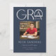 Diese modernen Marineblauktionen in Blau und Grau (5" x 7") enthalten das Wort "Grad" in abstraktem Design. Geben Sie eines Ihrer Lieblings-Fotos zusammen mit Ihrem Namen, Abschluss Jahr, Schule, Grad und Bereich der Fokussierung. Die Rückseite ist in modernen Marineblau-Tönen auf grauem Hintergrund gehalten.
