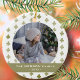 Modernes Foto Blumenmuster Weihnachtsgeschmack Keramik Ornament der Familie. Niedliches und modernes Design mit einer grünen, einfachen Blume. Fügen Sie Ihr Foto und Ihren Namen hinzu und machen Sie einen süßen Sake für eine Familie.