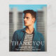 Moderne Budget Abschluss Dankeschön-Karte mit einem einfachen und männlichen Design mit "Danke" in großen kühnen Typografie zusammen mit dem Namen, Schule und Klasse Jahr des Absolventen über Ihrem Lieblings-Foto. Auf der Rückseite befindet sich ein marineblauer Mörtel mit Ihrer personalisierten Nachricht. Diese Dankeschön-Karte ist perfekt für einen Typ-Absolvent.