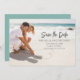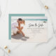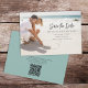 Dieses Design bietet Save the Date Hochzeitsgeschenk mit einem trendigen QR-Code ein schlicht elegantes, stilvolles Kalligrafie niedliches einzigartiges Design, Vintages handgeschriebenes, einfaches, modernes, minimalistisches Foto, 1-fach-Verlobung, schicke Weiß-Schrift, aquamarine Schrift-Typografie-Schriftart, Foto speichern Sie die Daten, Foto, moderne handgeschriebene Schrift