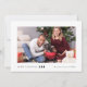 Einfache und moderne Flachbild-Ferienkarte. Das Design verfügt über ein großes Foto, einen serifenlosen Schriftart, ein Schwarz-Ferien-Baumbild auf der weißen Karte. Baummuster auf der Rückseite der Ferienkarte.