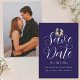 Moderne Foto Hochzeit speichern das Datum mit Whimsical Dinosaur Theme Hochzeit "Save the Date" Marineblau und Weiß Card Funny T-Rex Braut & Groom Hochzeitsankündigung Machen Sie Ihre Hochzeit wirklich unvergesslich mit dieser spielerischen Dinosaurier-themed "Save the Date" Karte mit einer charmanten T-Rex Braut und Bräutigam in sanfter Wasserfarbe. Diese Karte wurde für lustige Paare konzipiert und verbindet die zauberhafte Romantik mit moderner Eleganz und die bezaubernde Dinosaurier-Illustration mit einem knalligen weißen, eleganten Drehbuch und moderner Typografie auf einem marineblau-Hintergrund für einen unvergesslichen ersten Eindruck. Mit Zazzle’s einfachen Bearbeitungs-Tools können Sie Ihr Foto mit Ihren Namen und Ihrem Hochzeitsdatum ganz einfach personalisieren. So können Sie Ihre Liebe wahrheitsgetreu ankündigen. Ideal für Dinosaurier-Liebhaber, Jurassic-bezogene Hochzeiten oder Paare, die gewollt haben, ihre Hochzeitsstätte mit einer leichten Drehung zu versehen. Dieses originale T-Rex-Kunstwerk von Künstlerin und Designerin Catherine Sweetman ist exklusiv auf Zazzle erhältlich und macht Ihr Save the Date so einzigartig wie Ihre Liebe.