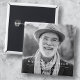 Design in einfacher serifenloser Typografie. Geben Sie das Jahr der Geburt und des Todes und ein individuelles Foto hinzu.