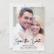 Moderne, handgeschriebene Hochzeit Sichern Sie die Datum Ankündigung Foto-Karte personalisiert mit den Namen der Braut und Bräutigam zu sein, Hochzeitstag und Ort.