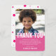 Vielen Dank an Freunde und Verwandte, die Ihren Geburtstag zum besondere Anlass mit dieser modernen Geburtstagsparty gemacht haben. Mit dem Text "DANK YOU" in fett weißem Schriftart mit Schatten, ein Foto des Geburtstagsmädchens oder Jungen, und eine Danksagung, die leicht personalisiert werden kann.