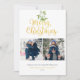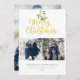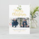 Hübsche Aquarellmalerei hängt über schicke Goldschrift Merry Weihnachtstypografie auf diesen eleganten Foto Urlaubskarten. Personalisieren Sie die Nachricht, 2 Fotos, Familienname und Datum auf der Vorderseite und fügen Sie ein anderes Foto auf der Rückseite oder verlassen leer. Entwickelt von Thisisnotme©