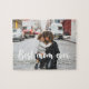 Ein einfaches Foto-Puzzle mit der herzlichen Botschaft "Beste Mutter je", perfekt, um den Tag der Mutter mit Stil zu feiern. Fügen Sie einfach Ihr eigenes Bild hinzu und ändern Sie die Farbe des Schriftartes nach Ihren Wünschen.