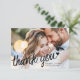 Vielen Dank für Ihre Hochzeitsgäste mit diesem eleganten und eleganten Foto Dankeschön-Karte. Die Vorderseite dieser trendigen und modernen Karte ist mit einem Ihrer Lieblings-Hochzeitskartons anpassbar und enthält die Formulierung "Danke" in schwarzem kalligraphischen Schriftart mit einem winzigen Herz, Ihren Namen, und Ihrem Hochzeitsdatum über ein durchsichtiges Weißgradientenüberlagern. Die Rückseite der Karte ist leicht personalisierbar mit Ihrer persönlichen Danksagung, einem zweiten Bild und einem benutzerdefinierten QR-Code, der zu Ihrer Hochzeitswebsite oder Online-Foto-Galerie führen wird.