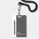 Ein modernes und einfaches Abzeichen, das nicht von den wichtigen Details ablenkt. Leicht lesbar aus der Ferne. Fügen Sie ein individuelles Logo und Firmendetails hinzu. Geben Sie den Namen, das Foto und den beruflichen Titel des Mitarbeiters ein. Die Bar der Farben kann so angepasst werden, dass sie den offiziellen Farben des Unternehmens entspricht. Fügen Sie auf der Rückseite weitere Informationen wie Rücksendeadresse und die Mitarbeiternummer hinzu. Ideal für runde Logos.