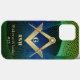 Stilvoller Goldplatz und kompass Masonic Symbol personalisierte Handy-Gehäuse mit modernem Fraktal Hintergrund.