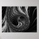 Modernes Fraktal Schwarz-weiß Metal Nautilus Swirl Poster