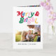 Mit unserer modernen Merry & Bright Retro Foto Card erleben Sie Weihnachten! Diese Karte zeichnet sich durch ein lustiges Muster von fröhlich & hell in bunten Retro-Typografie aus und ist somit perfekt für alle Weihnachtsliebhaber in Ihrem Leben. Passen Sie die Kartenvorderseite mit Ihrem bevorzugten Weihnachtsgeschenk und Ihrem Familiennamen an und fügen Sie eine besondere Nachricht auf der Innenseite auf einem farbenfrohen gestreiften Muster auf einem marineblauen Hintergrund hinzu. Mit dieser Karte können Sie Ihren Urlaub Grüße hell und fröhlich machen! Verbringen Sie einen Feiertagjubiläum und lassen Sie Ihre Lieben den Weihnachtsgeist spüren. Lass unsere moderne Merry & Bright Farbenfrohe Retro Fotokarte zu Weihnachten die unvergesslichste! Kontaktieren Sie Designer für passende Produkte. Erhöhen Sie den Stil Ihrer Familie mit unserer trendigen Kollektion von passenden Produkten, hier: https://www.zazzle.com/collections/119053752706401805 Copyright berry design, alle Rechte vorbehalten.
