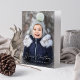 Wünschen Sie Freunden und Familie ein frohes Weihnachtsfest mit einer niedlichen Urlaubskarte! Auf der Vorderseite der Karte befindet sich Ihr vertikales Foto mit feinen Schneefräsen, die an der Karte liegen. "Frohe Weihnachten" wird in einem weißen, trendigen Kalligraphieskript mit dem Namen Ihrer Familie unten angezeigt. Im Inneren der Karte befindet sich eine benutzerdefinierte Nachricht oder ein leerer verlass, um eine eigene zu schreiben. Auf der Rückseite der einfachen Urlaubskarte sind weiße Schneeflocken mit rotem Hintergrund dargestellt (oder wechseln Sie in eine Farbe Ihrer Wahl).