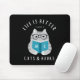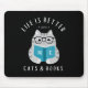 Für das Buch und Katzenliebhaber. Die lustige Katze trägt eine Brille und liest ein Buchmousepad. Personalisieren Sie die Aufnahme von zwei Monogramm-Initialen. Ein beliebtes Geschenk für den Buch- und Katzenliebhaber in Ihrem Leben.