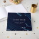 Herrliches marmorfarbenes Hintergrunddesign in Marineblau mit blütendem Rosa, elegantes, einfaches Design, stilvoll und chic, großartige Gästebücher für moderne Hochzeiten und nautische Hochzeiten. Sehen Sie sich alle passenden Stücke in der Sammlung an.
