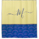 Modernes Gelbes Küstenblauer Seashell-Monogramm Duschvorhang
