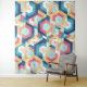 Ein sommerlich lebendiges geometrisches Muster, bestehend aus Hexagon, Quadraten, Würfeln, Dreieckslinien und Streifen Formen und goldenen Strichen. Diese abstrakte grafische Musterillustrierung, symmetrisches, kreatives Design, Mode Trend Dekorative Design ist ideal für Wohngestaltung und jeden Tag tragen. Gefüllt mit Senfgelb, vereisten Mango, lebendigen Korallen, Heidelbeerpfannkuchen, Karnevalglas, Aqua blau, dunkelblau und weiß hell fröhliche Farben. Ein stilvolles, trendiges, fröhliches, fröhliches Design, originelles Kunstwerk.