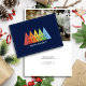 Einfache, moderne Weihnachts-Weihnachtskarte mit einer Farbreihe, die sich überlappende Weihnachtsbaumgrafiken und familiäres Foto enthält. Minimalistische Typografie. Sauberes einfaches Design. Alle Textbereiche sind personalisierbar. Kontaktieren Sie uns für Hilfe bei der Personalisierung oder Anpassung an Ihre individuellen Wünsche. Gute Ferien!