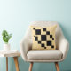 Ein stilvolles Kissen mit gewagten geometrischen Schwarz-Weiß-Mustern auf einem weichen beigen Hintergrund, das jedem Wohnbereich eine zeitgenössische Touch verleiht. Ideal für Komfort und ästhetische Anziehungskraft.