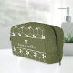 Das geometrische Muster Grün und Weiß mit einem kleinen Stern. Personalisieren Sie Ihre Toilettentasche mit Ihrem Namen. Wenn Sie gewollt, um es weiter anzupassen, klicken Sie einfach auf diesen Knopf anpassen. Im Designbereich können Sie auch Schriftart oder Farbe ändern, wenn Sie gewollt haben.
