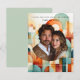 Personalisieren Sie mit Ihrem bevorzugten Foto. Hübsch, modern, geometrisch, Save the Date mit Formen in Rosa, Pfirsich, Orange, Grün, aquamarin und Blau.