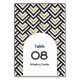 Mit dieser schicken, modernen geometrischen Tischnummer heben Sie Ihre Hochzeitsdekoration hervor. Dieses Design mit kühnen Schwarz-Weiß-Mustern, goldenen Details und eleganter Typografie kombiniert, ist perfekt für zeitgenössische Hochzeiten, die eine elegante und stilvolle Ästhetik beinhalten. Personalisieren Sie sich mit den Namen und Tischnummern des Paares, um ein unvergessliches und zusammenhängendes Hochzeitsthema zu schaffen. Ideal für minimale und moderne Hochzeitsfeiern.
