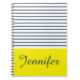 Modernes, weiß, blau und gelb gestreiftes Muster mit individuelle Name