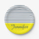 Modernes, weiß, blau und gelb gestreiftes Muster mit individuelle Name