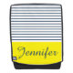 Modernes, weiß, blau und gelb gestreiftes Muster mit individuelle Name