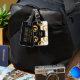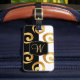 Ein kühnes modernes Design mit goldenem Curls-Muster auf schwarz-weißem Hintergrund mit individuellem Monogramm, das Sie mit Ihrem Namen, Ihren Initialen oder anderen Texten personalisieren können. Legen Sie Ihre Kontaktdaten auf der Rückseite des Gepäckanhängers ein. Das ist ein tolles Geschenk für Reisende.