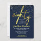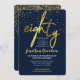 Eine wunderschöne, moderne 80. Geburtstagsfeier. Diese fabelhafte Einladung zeigt die Goldeffekttypografie auf einem marineblauen Hintergrund mit Goldkonfetti. Einfach zu personalisieren mit Ihren eigenen Geburtstagsfeiern Details.
