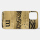 Moderne Tierprägung - sowohl Zebra als auch Leopard - in Pinselstrichen mit Gold, Glitzer, Schwarz und mit dem Monogramm des Skriptes, Vorname und Initial, für das iPhone 12.