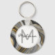 Ein Schlüsselanhänger mit abstraktem Design mit einem agaten Geodenmineralmuster. Gold, Grau, Weiß und Schwarz setzen sich zusammen und bilden elegante Farbwellen. Ein hellgrauer Kreis mit einem dünnen schwarzen Rahmen, der oben mit Ihrem Namen und dem Monogramm-Initial überlagert ist. Ideal, um einen Hauch von Klasse und Eleganz zu vermitteln.