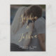 Diese moderne, Save the Date Postkarte besticht durch goldene Kalligraphie und ein elegantes Vellum-Aussehen der Imitate. Auf der Vorderseite der Postkarte sind die Namen des Paares in Gold geschrieben. Fügen Sie unten das Datum und den Ort der Hochzeit hinzu, in weiß geschrieben. Das gold-weiße Typografie-Design überlagert ein volles Foto (vertikale Ausrichtung). Auf der Rückseite der Save the Date, fügen Sie Hochzeitsdetails wie die Hochzeitswebsite.