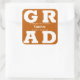 GRAD in fett weißer Schrift füllt die Ecken dieser verbrannten orangefarbenen Gra Quadrat Aufkleber. Herzlichen Glückwunsch über den Namen Ihres Absolventen und die Klasse von unten. SIEHE GANZE SAMMLUNG von vorgefertigten Farbkombinationen, Einladungen, Tellern, Servietten, Schildern und mehr in unserem Shop.
