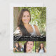 Moderne Graduiertenparty mit 5 Fotos (4 vorne und 1 hinten) mit einem handgeschriebenen, modischen Schriftstil-Titel-Design GRADUATE, mit Graduierungsmütze oder Mörtel in Weiß auf einem bearbeitbaren schwarzen Hintergrund kann man in eine Schulfarbe wechseln, eine Farbe, die mit den Fotos koordiniert wird, oder eine Lieblingsfarbe. Auf der Rückseite befinden sich Ihre Angaben zur Party Einladung. HILFE: Für Hilfe bei Designänderungen oder Personalisierungen, Farbänderungen, der Übertragung des Designs auf ein anderes Produkt oder der Koordination von Gegenständen, wenden Sie sich bitte an den Designer, bevor Sie über den Zazzle Chat MESSAGE Tab bestellen oder per E-Mail an makeitaboutyoustore@gmail.com.