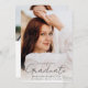 Mit dieser stilvollen, modernen Ankündigung des Foto Abschlusses verkünden Sie die Errungenschaften und Zukunftspläne Ihres Absolventen. Die Vorderseite der Ankündigung zeigt das voll bleichende senkrechte Foto des Absolventen. "Graduate" wird in einem trendigen, handgeschriebenen schwarzen Skript angezeigt. Personalisieren Sie die Ankündigung mit dem Abschluss Jahr, den Namen des Absolventen und den Namen der Schule. Die Ankündigung kehrt zurück, um ein zusätzliches Foto mit Ihrem benutzerdefinierten Text in schwarzer Schrift angezeigt zu bekommen. Diese 2-Foto-Abschluss-Ankündigung ist ideal für High School oder Uni-Abschlüsse.