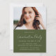 Mit unserer personalisierten Foto Abschlussfeier verkünden Sie den Meilenstein Ihres Absolventen stilvoll! Die Vorderseite zeigt ein vertikales Foto des Absolventen, das mit "Graduate" in einem handgeschriebenen, olivgrün geschriebenen Skript-Overlay dekoriert ist. Passen Sie die Vorderseite der Einladung mit dem Namen Ihres Absolventen, Abschluss Jahr und Schulname für eine persönliche Touch an. Dreh auf die Rückseite, um ein anderes Senior-Foto und alle Party-Details unten offen zu zeigen. Diese Einladung eignet sich perfekt für Hochschul- oder Uni-Feiern und Set den Ton für eine unvergessliche Veranstaltung. Erstellen Sie dauerhafte Erinnerungen und laden Sie Ihre Lieben ein, sich mit unserer Foto-Abschlussfeier zu den Festlichkeiten zu beteiligen!