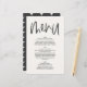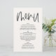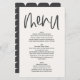 Modernes, handgeschriebenes, minimales grafisches, monochromes Hochzeitsmenü. Modernes Design auf dem Trend Typografie. Als Teil einer Kollektion können die Farben in Anzug mit Ihrem Farbschema geändert werden.