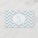 Moderne hellblaue, graue, Elfenbeinmuster Zickzack Muster monogramm personalisierte Visitenkarte. Es gibt einen Rahmen mit dem Monogramm in der Mitte. Ein stilvolles Zickzack-Design mit klassischen Streifen in zeitgemäßem, aber Vintagem Look. Sie können die Farbe des Hintergrunds - blau und monogramm - aus über 200 Farben aus dem Zazzle Farbdiagramm wählen. Elegantes, elegantes und raffiniertes Design, das als persönliche Visitenkarten oder für viele Arten von Geschäften wie Interiors, Crafters, Stylisten verwendet werden kann.