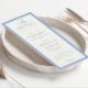 Begleiten Sie Ihre Gäste mit einem Menü, das so elegant wie Ihre Feier ist. Dieses Design verbindet sich mit einer kühnen Grenze und einer raffinierten Typografie nahtlos mit der zeitgenössischen Hochzeitskollektion "Moderne Grenzeleganz". Dieses Menü ist vollständig auf den Anzug Ihrer Küche zugeschnitten und verleiht Ihren Empfängen eine geschliffene und kohärente Touch.