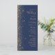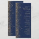Das elegante, moderne Hochzeitsprogramm besticht durch seine links Optik und das Design des Glitzer mit vergoldeten Imitaten. Der anpassbare Text kombiniert eine helle, goldfarbene Handschrift, Copperplate und kursiv gestaltete Schriftart auf marinebasischem Hintergrund.